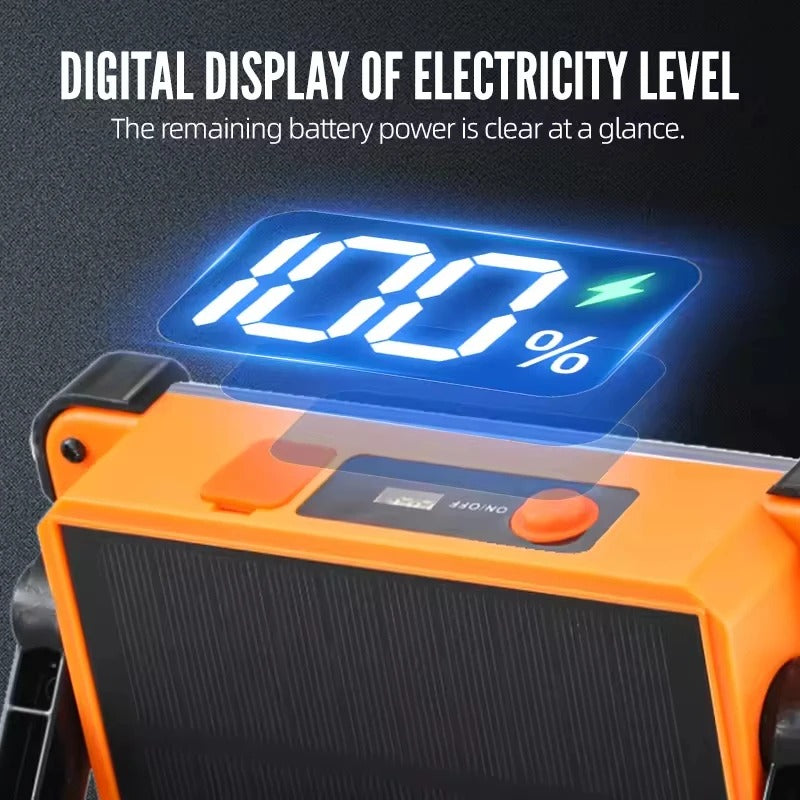 Light up your nights with this high-power solar rechargeable LED flood light. Perfect for outdoor use, emergencies, camping, security, and home backup lighting.