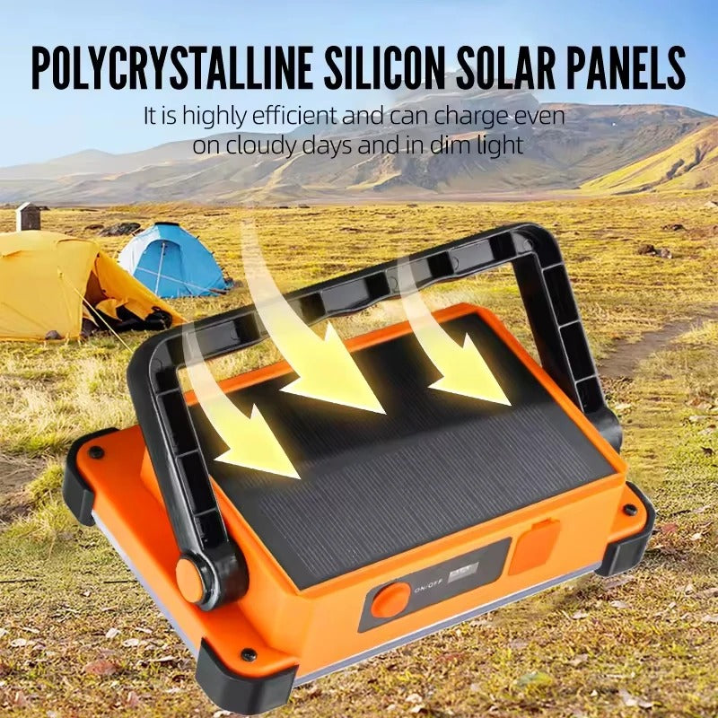 🔆 Solar Rechargeable LED Flood Light – Portable Outdoor Power Light